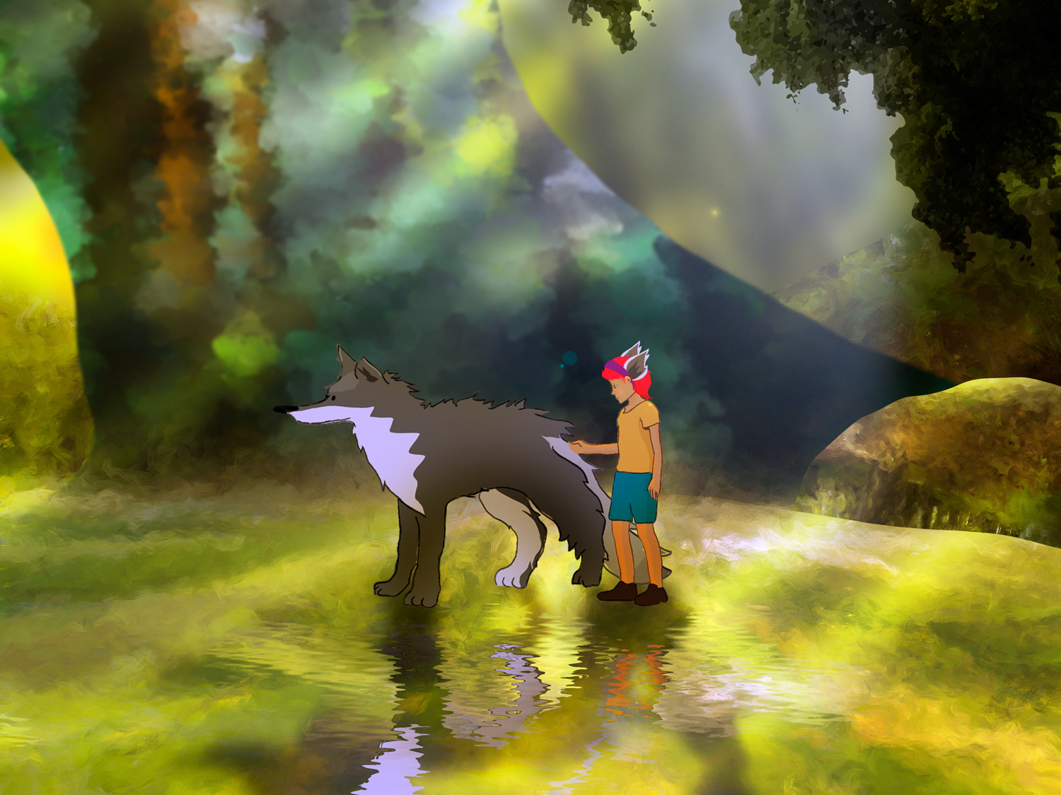 wolf and blue forest